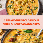 This vibrant Green Olive Soup combines earthy chickpeas, fragrant herbs, and tender orzo in a savory vegetable broth. Creamy coconut and briny green olives add a delightful twist to this comforting, flavorful dish perfect for any season.