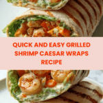 These Grilled Shrimp Caesar Wraps combine tender, flavorful grilled shrimp with a creamy homemade Caesar dressing, crisp romaine lettuce, and Parmesan cheese, all wrapped in warm flour tortillas. This easy-to-make wrap is perfect for a quick lunch or light dinner, offering a delicious twist on classic Caesar salad with the added smoky flavor of grilled shrimp.