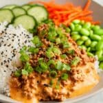 Delicious and flavorful Ground Turkey Rice Bowls with creamy and spicy Bang Bang Sauce, perfect for a quick and healthy weeknight dinner. This dish combines savory ground turkey seasoned with garlic, ginger, and soy sauce, served over rice with fresh vegetables and topped with a zesty, creamy sauce made with mayonnaise, sweet chili, and sriracha.