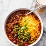 - Serve: Serve the chili hot with your choice of optional toppings such as sour cream, grated cheddar cheese, and chopped green onions.