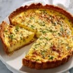 - Serve: Allow the quiche to cool for 5-10 minutes before slicing. Garnish with additional chives and serve warm.