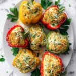 This herby ricotta stuffed bell peppers recipe is a vibrant and comforting dish perfect for any meal. Filled with fresh spinach, aromatic herbs, and creamy cheeses, these peppers are baked to golden perfection for a satisfying and flavorful treat.