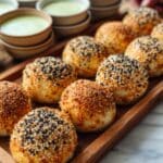 - Prepare for Air Frying: Brush the top of each dough ball with the lightly beaten egg if using, or alternatively spray with a light coating of oil to help with browning. Sprinkle Everything But The Bagel seasoning generously on top of each ball.