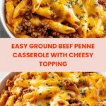 This homemade ground beef casserole combines tender penne pasta with a flavorful beef and marinara sauce, all topped with melted cheddar cheese. It’s a comforting, easy-to-make dish perfect for family dinners or meal prep.