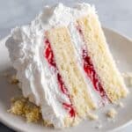 This Homemade Raspberry and Cream Angel Food Cake is a light, airy dessert layered with rich mascarpone cream and sweet raspberry preserves. Topped with glossy Italian meringue, it’s a beautiful centerpiece perfect for any celebration.
