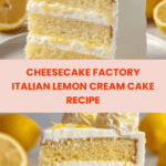 This Cheesecake Factory Italian Lemon Cream Cake features tender vanilla cake layers paired with a luscious lemon mascarpone cream filling and a crisp, sweet crumb topping. Perfectly balanced with bright lemon zest and juice, this cake combines creamy textures with a delicate crumb finish for a refreshing and elegant dessert.