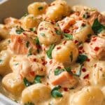 This Juicy Smoked Salmon Gnocchi recipe combines tender gnocchi with a creamy, flavorful sauce featuring smoked salmon and fresh spinach. It’s an elegant yet easy dish perfect for a weeknight dinner or special occasion.