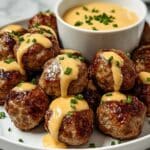 These Korean BBQ Meatballs are a delicious fusion of savory and spicy flavors, combining ground beef with traditional Korean ingredients like gochujang and sesame oil. Perfectly baked to juicy tenderness and served with a creamy spicy mayo dip, they make an ideal appetizer or main dish for any occasion.