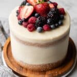 - Final Frosting and Garnish: Apply a final, thick layer of frosting on the sides and top. Garnish with fresh berries. Serve and enjoy your vibrant lemon berry mascarpone cake!