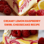 This Luscious Lemon Raspberry Swirl Cheesecake is a creamy, tangy dessert featuring a buttery graham cracker crust, smooth lemon-infused cheesecake filling, and a vibrant raspberry swirl sauce. Perfect for spring and summer gatherings, its combination of fresh lemon zest and bright raspberry sauce delivers a refreshing twist on a classic cheesecake.