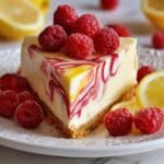 This Luscious Lemon Raspberry Swirl Cheesecake is a creamy, tangy dessert featuring a buttery graham cracker crust, smooth lemon-infused cheesecake filling, and a vibrant raspberry swirl sauce. Perfect for spring and summer gatherings, its combination of fresh lemon zest and bright raspberry sauce delivers a refreshing twist on a classic cheesecake.