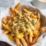 Store any leftover fries and cheese sauce separately in airtight containers in the refrigerator for up to 2 days. Reheat the fries in the oven or air fryer to restore crispiness, and warm the cheese sauce gently on the stove or in the microwave before serving.