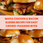 These Maple Chicken & Bacon Sliders are a perfect blend of sweet and savory flavors, making them an ideal appetizer or casual meal. Tender chicken glazed with maple syrup and Dijon mustard pairs beautifully with crispy bacon and fresh arugula on soft slider buns.