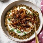 Keywords: Mujadara, lentils and rice, caramelized onions, Middle Eastern recipe, vegetarian lentil recipe, easy healthy dinner