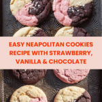 Keywords: Neapolitan cookies, strawberry cookies, chocolate cookies, vanilla cookies, layered cookies, freeze-dried strawberry recipe, colorful cookies, lemon zest cookies
