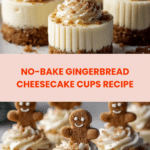 These No-Bake Gingerbread Cheesecake Cups are a festive and effortless dessert perfect for the holiday season. Combining a spiced gingerbread cookie crust with a creamy, lightly sweetened cheesecake filling infused with warm holiday spices, these cups are topped with whipped cream and charming mini gingerbread men. Ready in just a few hours with no oven required, they’re an ideal treat to prepare ahead of time and delight guests with their rich, seasonal flavor.