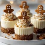 These No-Bake Gingerbread Cheesecake Cups are a festive and effortless dessert perfect for the holiday season. Combining a spiced gingerbread cookie crust with a creamy, lightly sweetened cheesecake filling infused with warm holiday spices, these cups are topped with whipped cream and charming mini gingerbread men. Ready in just a few hours with no oven required, they’re an ideal treat to prepare ahead of time and delight guests with their rich, seasonal flavor.