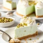 Keywords: No Bake Pistachio Cheesecake, pistachio dessert, no bake cheesecake, easy cheesecake, graham cracker crust, pistachio pudding dessert