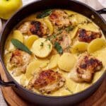 Keywords: Normandy Chicken, French Apple Cider Chicken, chicken thighs, apple cider sauce, caramelized apples, Dijon mustard, French cuisine