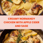 Normandy Chicken is a comforting French dish that combines tender chicken with the sweet and tangy flavors of apple cider and cream. This recipe balances savory herbs, caramelized apples, and a creamy sauce, making it perfect for a cozy dinner.