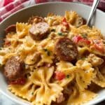 This One Pot Creamy Cajun Sausage Pasta is a comforting and flavorful dish combining spicy andouille sausage, tender bowtie pasta, and a rich creamy sauce infused with Cajun seasoning. Cooked all in one skillet, it’s an easy and delicious weeknight meal with a perfect balance of creamy, cheesy, and spicy notes.