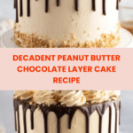 This Peanut Butter Chocolate Layer Cake is a rich, decadent dessert combining the classic flavors of peanut butter and chocolate. With moist chocolate layers, creamy peanut butter frosting, and a glossy chocolate ganache, it’s perfect for celebrations or any sweet craving.