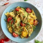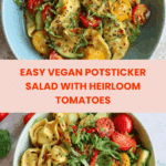 This vibrant potsticker salad combines crispy vegan gyoza with fresh heirloom tomatoes and cucumbers, dressed in a tangy balsamic tamari vinaigrette. It’s a refreshing, flavorful dish that’s perfect for light lunches or as a shareable appetizer.