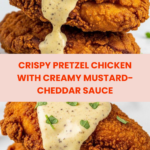 Pretzel Chicken with Mustard-Cheddar Sauce is a crispy, flavorful dish that combines the crunch of pretzel coating with a rich, tangy sauce. Perfect for a family dinner, this recipe is easy to make and sure to impress.
