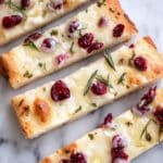 Keywords: cranberry brie flatbread, quick appetizer, mascarpone flatbread, holiday snack, creamy cheese flatbread, rosemary flatbread