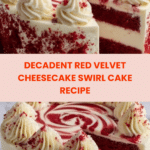 This Red Velvet Cheesecake Swirl Cake is a delightful fusion of classic red velvet cake and creamy cheesecake. The cake features a rich red velvet batter swirled with a smooth, fluffy cream cheese mixture, baked to perfection for a moist and flavorful treat. Perfect for celebrations or any special occasion, this cake combines vibrant color, tender crumb, and luscious cheesecake swirls for an irresistible dessert.