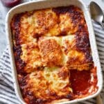 This Ricotta Eggplant Casserole is a hearty and flavorful baked dish featuring tender slices of roasted eggplant layered with a rich tomato passata, fresh herbs, creamy ricotta, and grated parmesan cheese. Perfect as a comforting vegetarian main, it offers a delicious medley of Mediterranean flavors baked to golden perfection.