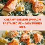 This Salmon Spinach Pasta is a delicious and creamy dish that combines tender salmon with fresh spinach and a rich Parmesan sauce. It’s perfect for a satisfying weeknight dinner or a special occasion meal.