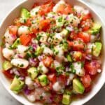 This Shrimp Ceviche is a refreshing and zesty seafood dish featuring tender shrimp marinated in fresh lime and lemon juices, combined with crisp vegetables, avocado, and a touch of heat from jalapeno. Perfect as a light appetizer or snack, it’s served chilled and pairs wonderfully with crunchy tortilla chips.