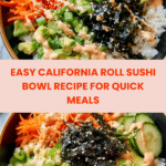 A refreshing and easy-to-make deconstructed sushi bowl inspired by the classic California roll. This recipe features perfectly cooked sushi rice topped with shredded imitation crab, fresh cucumber, creamy avocado, nori strips, and toasted sesame seeds. It’s a quick and satisfying way to enjoy sushi flavors without the rolling.