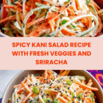 A refreshing and spicy Japanese-inspired kani salad featuring shredded crab sticks, crunchy cucumber and carrot julienne, all tossed in a creamy, tangy, and spicy mayo-based dressing. Perfect as a light appetizer or side dish.