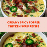 Spicy Popper Chicken Soup is a creamy, flavorful dish that combines the heat of jalapeños with rich cheeses and tender chicken. Perfect for those who enjoy a comforting meal with a bit of a spicy kick.