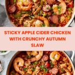 Sticky Apple Cider Chicken is a delightful dish where tender chicken thighs are glazed with a sweet and tangy apple cider sauce. Paired with a crisp, refreshing autumn slaw, it’s a perfect balance of flavors and textures ideal for a cozy meal.