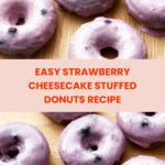 Delight in these irresistible Strawberry Cheesecake Stuffed Donuts, featuring soft refrigerated biscuits filled with a creamy blend of tangy cream cheese and sweet strawberry preserves. Fried to golden perfection and dusted with powdered sugar, these treats are perfect for breakfast or dessert lovers craving a fruity, indulgent bite.