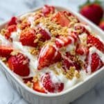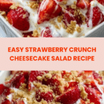 This Strawberry Crunch Cheesecake Salad is a delightful layered dessert combining creamy cheesecake base, fresh strawberries, and a crunchy topping made from crushed cookies and freeze-dried strawberries. Light, fluffy, and easy to prepare, it’s a perfect no-bake treat for gatherings and summer parties.