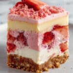 Strawberry Shortcake Cheesecake is a delightful fusion of creamy cheesecake and fruity strawberry flavors topped with a sweet, crunchy crumble. This no-bake strawberry topping and rich, smooth texture make it a perfect dessert for any occasion.