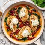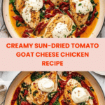 This Sun-Dried Tomato Goat Cheese Chicken is a flavorful and elegant dish that’s surprisingly easy to make. Tender chicken cutlets are simmered in a savory tomato and herb sauce, then topped with creamy goat cheese for a delightful finish. It’s perfect for a satisfying weeknight dinner or a special occasion.