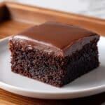 - Frost the Cake: Spread the prepared chocolate frosting evenly over the cooled cake. Slice into 9 or 16 squares as desired and serve.