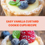 Delight in these Vanilla Custard Cookie Cups, featuring buttery homemade cookie bases filled with rich, creamy vanilla custard. Perfect for a sophisticated dessert or an indulgent treat, these cups combine the crisp texture of baked cookies with the smoothness of classic vanilla custard, garnished optionally with fresh fruit.