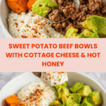 These Viral Cottage Cheese Sweet Potato Beef Bowls combine tender air-fried sweet potatoes with seasoned ground beef, creamy cottage cheese, and fresh avocado, all drizzled with a touch of hot honey for a perfect balance of savory, sweet, and spicy flavors. A quick and nutritious meal perfect for busy weeknights.