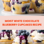 These white chocolate cupcakes are a delightful treat, combining the sweetness of white chocolate with juicy fresh blueberries. Soft, moist, and topped with a creamy white chocolate frosting, they’re perfect for any occasion.