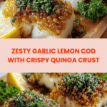 Zesty Crunch Garlic Lemon Cod is a delightful dish that combines tender, flaky cod with a crispy quinoa and panko crust infused with garlic and lemon flavors. It’s bright, flavorful, and perfect for a healthy weeknight dinner that feels special.
